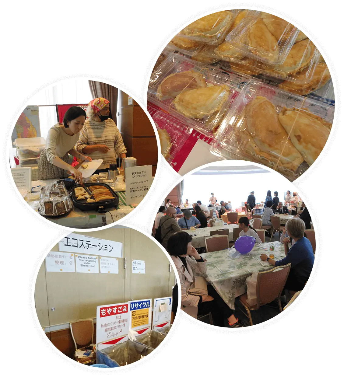 外国人会員が家庭のおやつを持ち寄り販売します。